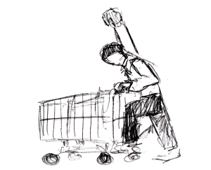 As I was doing this, I saw a guy get out of his car. He was a TTC driver that I had seen before, driving a local bus; I recall him having a good sense of humour. As I walked back from putting away my cart, he commented, “I can’t believe I just saw a grown-ass man do that.” He chuckled.